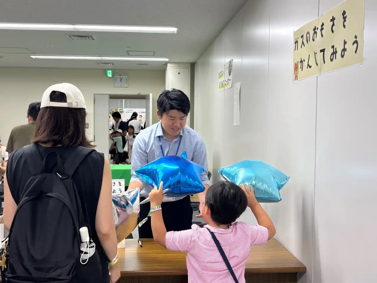新コスモス電機は、2018年より毎年、経済産業省が開催する「経済産業省こどもデー」に出展しています。2025年度は8月6・7日の2日間開催され、当社ブースでは、「ガス」っていったいどんなもの?というテーマで、可燃性ガスの爆発の力を利用した的あてゲームや風船によるガスの重さ比較、一酸化炭素検知機能付き火災警報器「PLUSCO(プラシオ)」の塗り絵などを実施しました。これまでに多くの親子連れに来場いただき、ガスや火災への正しい理解を深めていただいています。