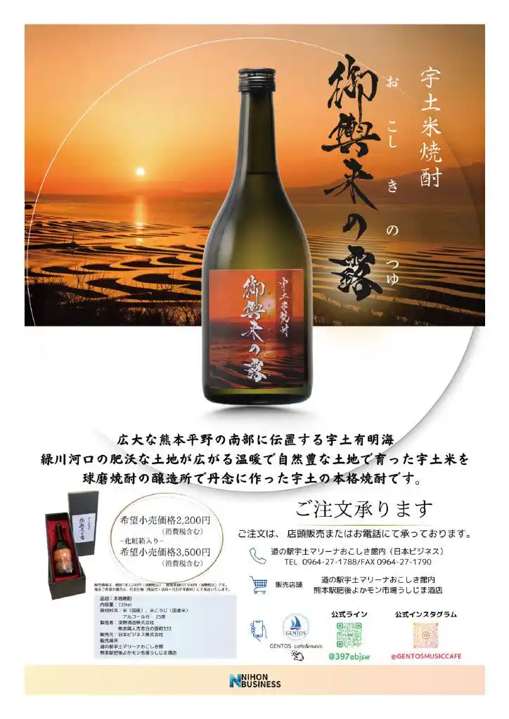 熊本県熊本市で指定管理受託、アウトソーシング、ビルメンテナンス、農業生産推進等、多方面で事業を展開する株式会社グッドスタッフ(本社:熊本県熊本市東区新南部4丁目7-38 OMビル4F、代表:日野 源男)は、地域資源活用・企画推進事業の一環として熊本県宇土市産の米で仕込んだ本格焼酎を海中で九か月熟成させたプレミアム焼酎『御輿来 海の刻印』の特別フェアを、2025年9月1日~30日の期間限定で実施します。会場は、神楽坂「おむすびJazz/Snack