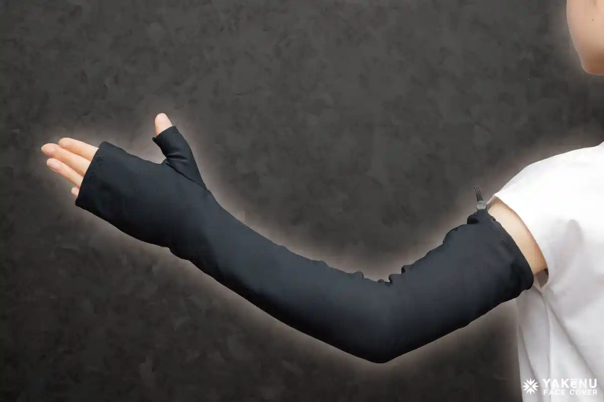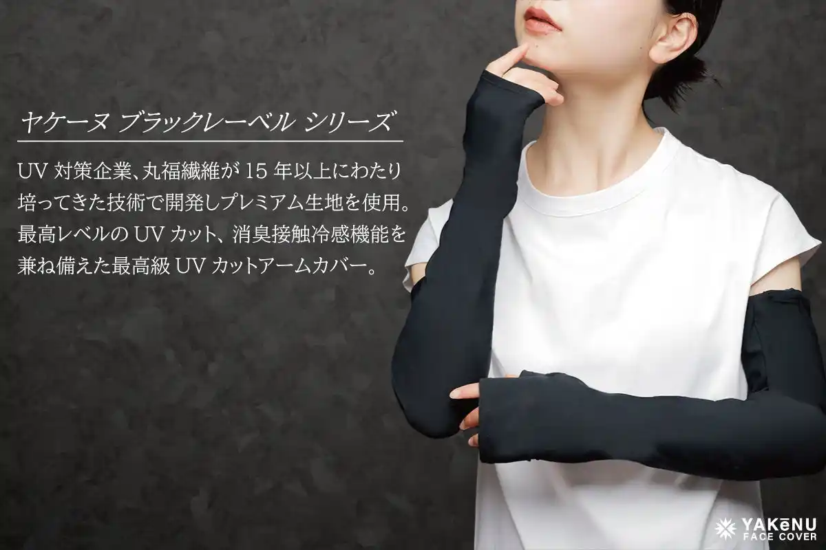 このたび、「ヤケーヌ99.9ブラックレーベル」フェイスカバーのご愛用者からの「この生地でアームカバーも欲しい」という声を受け、シリーズ待望の新作として、夏の外出時に欠かせない“アームカバー”が登場。日差しの強い季節も手元までしっかりと紫外線をブロックし、通勤や自転車での移動、スポーツ観戦など、さまざまなシーンで快適に過ごせる1枚です。 |
