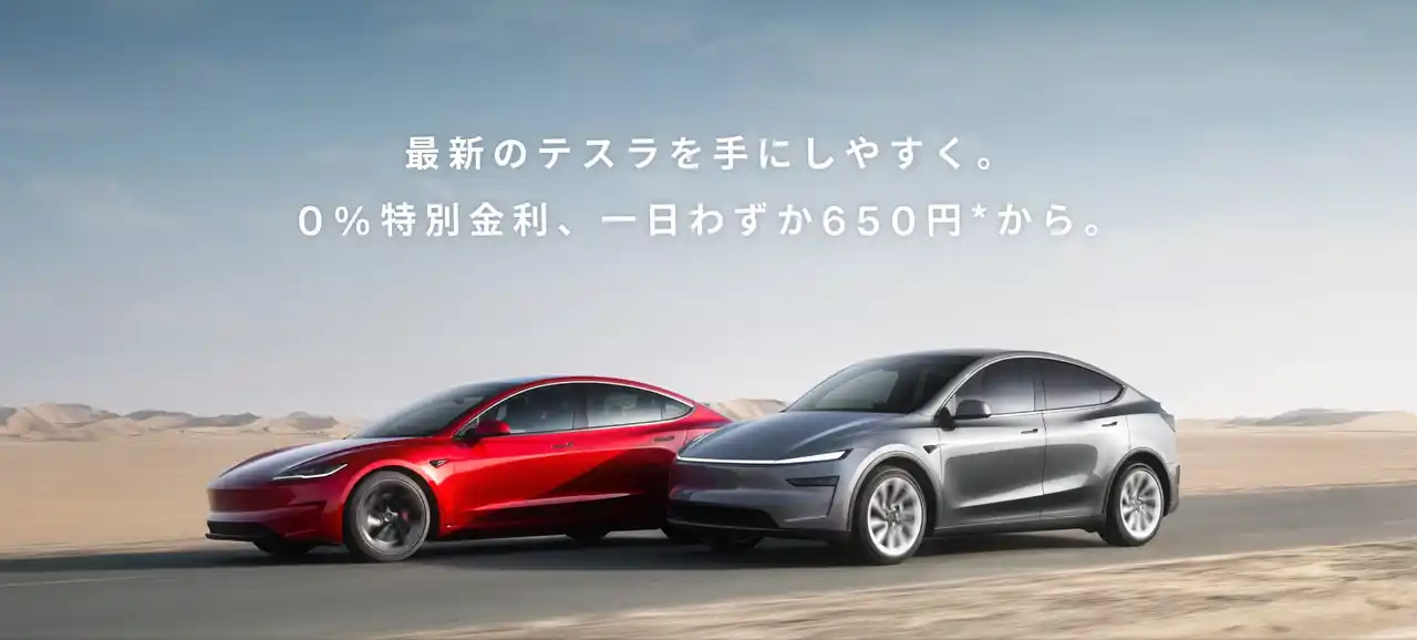 Model YおよびModel 3の在庫車を対象とした「0%特別金利」を開始。最新のテスラを1日わずか650円から。 |