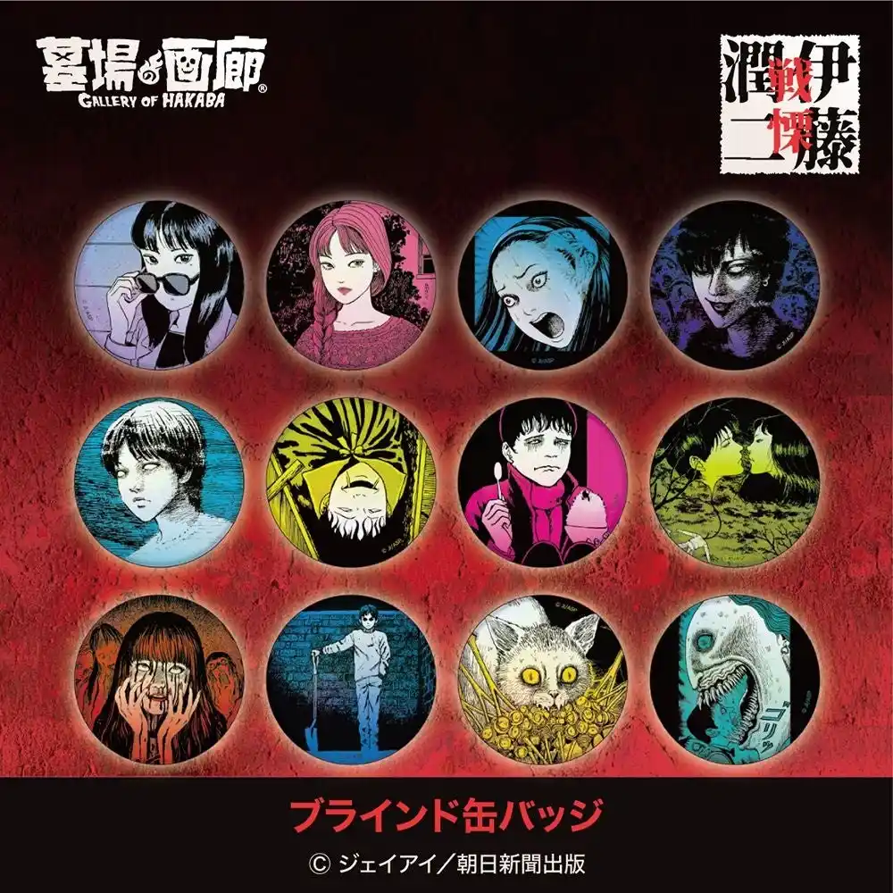 ブラインドラメ缶バッヂ 全12種/各550円(税込) サイズ:φ76mm 作品ごとに魅力が変化する伊藤潤二の世界を、缶バッジでコンプリートしよう! |
