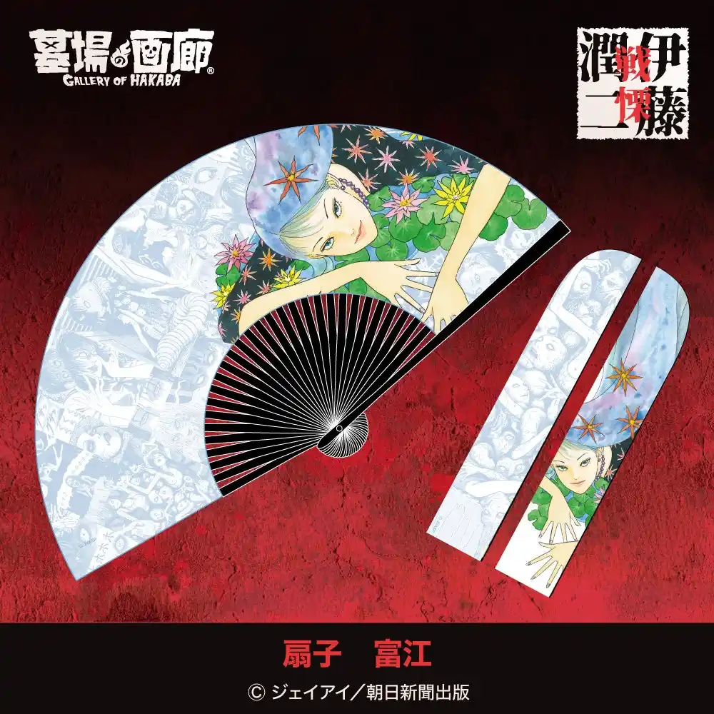 扇子 富江/3,300円(税込) サイズ:210mm×30間 伊藤潤二ワールドを代表する魔性の少女『富江』の、色鮮やかなイラストを扇子で再現。 |