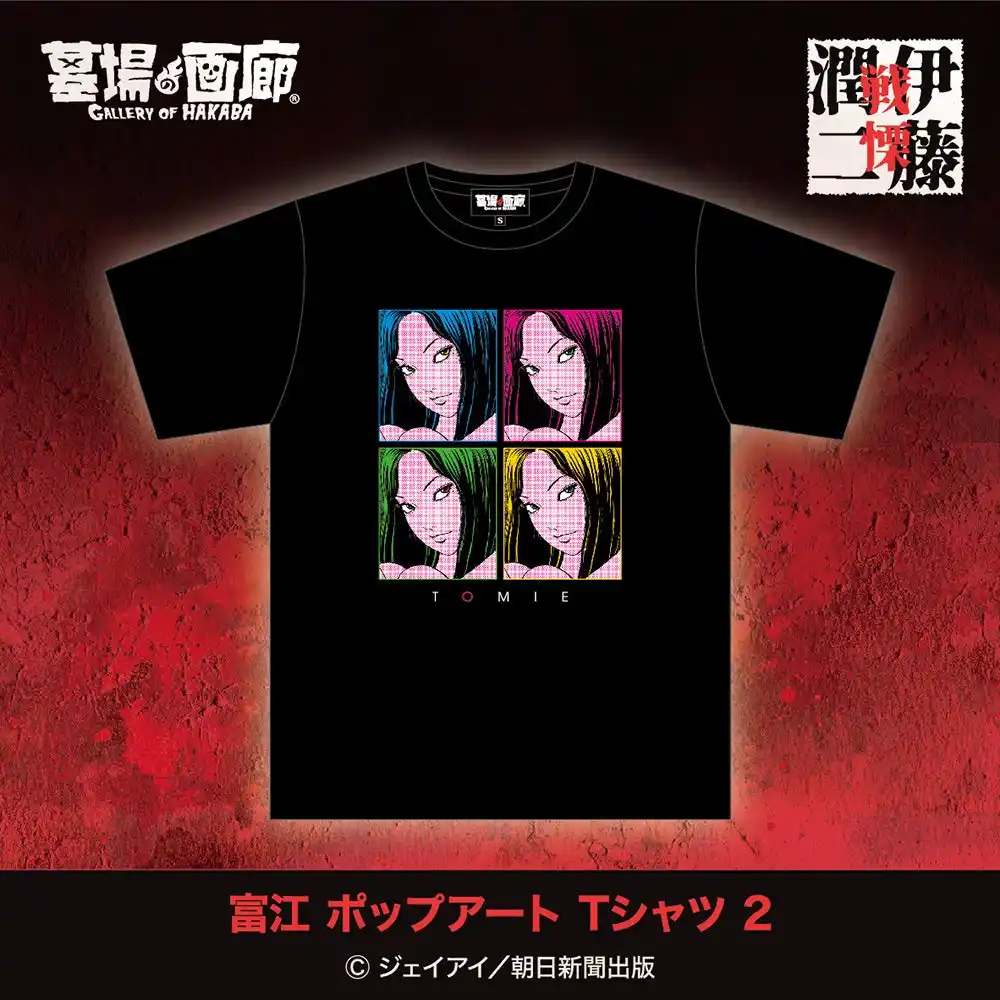 ポップアート Tシャツ2/5,500円(税込) サイズ:S~XXL 代表作『富江』シリーズの主人公・富江を、遊び心あふれるポップアートで表現したTシャツの第二弾が登場だ。 |