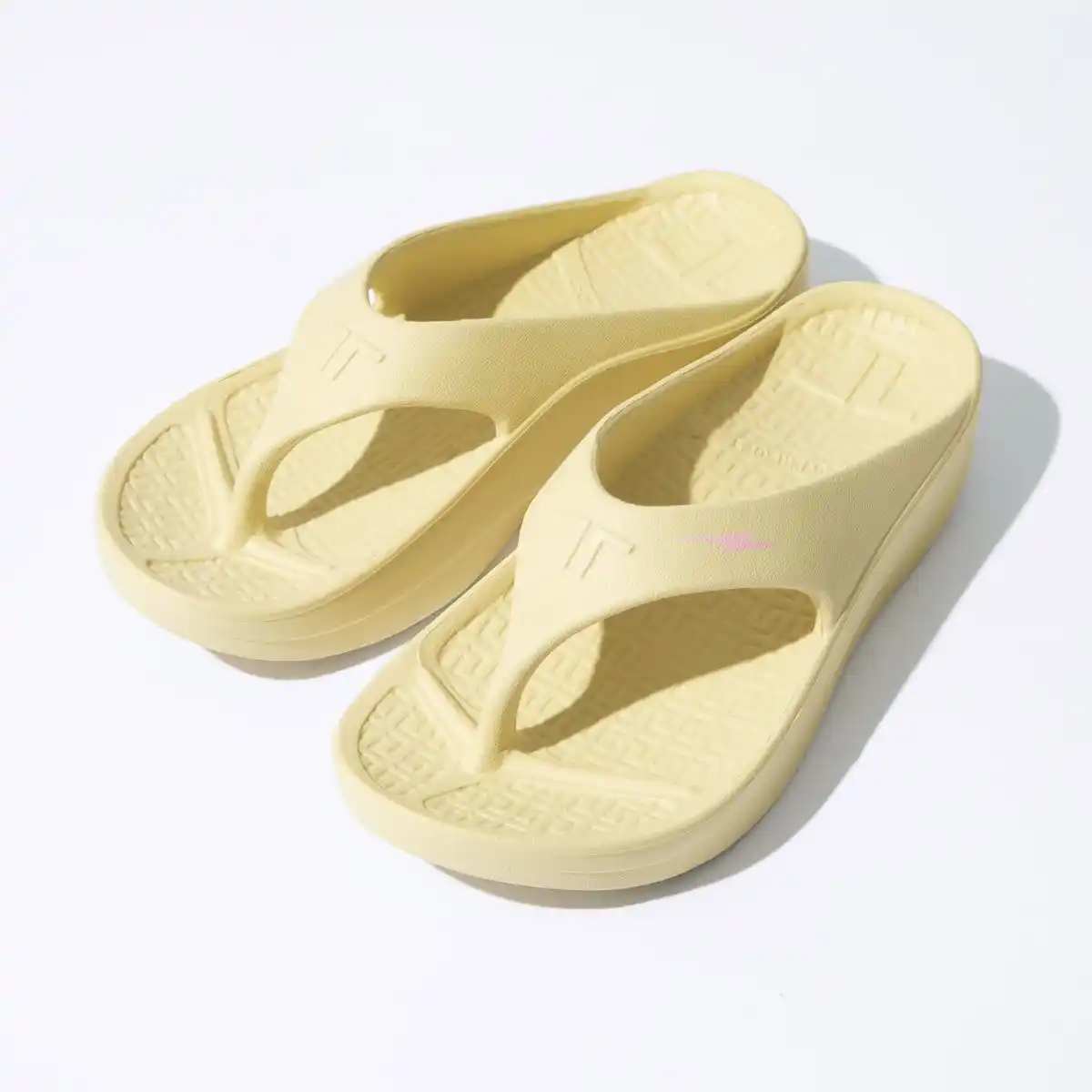 TELICのフットウエアは、独自開発したEVA素材を採用しています。履いていることを忘れるような軽さと、素足にしっとりと馴染むフィット感で、まるで“雲を歩くような履き心地”です。 |