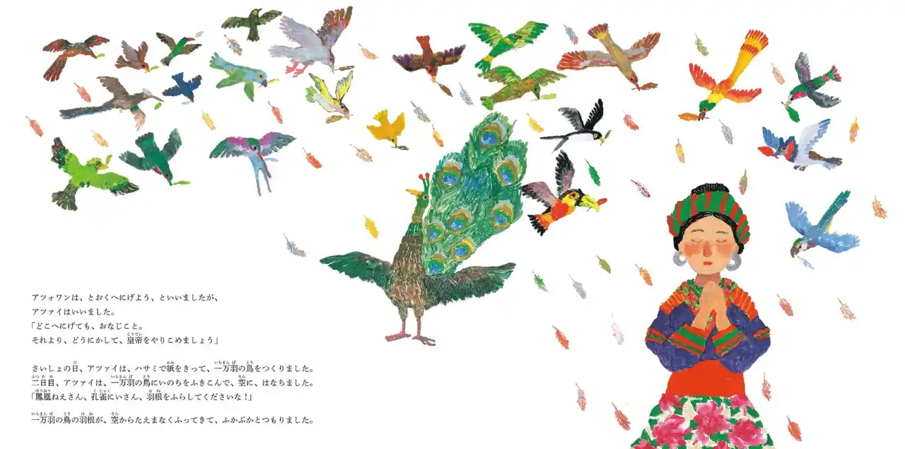 機転とふしぎな力でアツォワンを助け、皇帝に立ち向かう凛々しいヒロイン像は、現代の子どもたちにとっても魅力的にうつることでしょう。 |