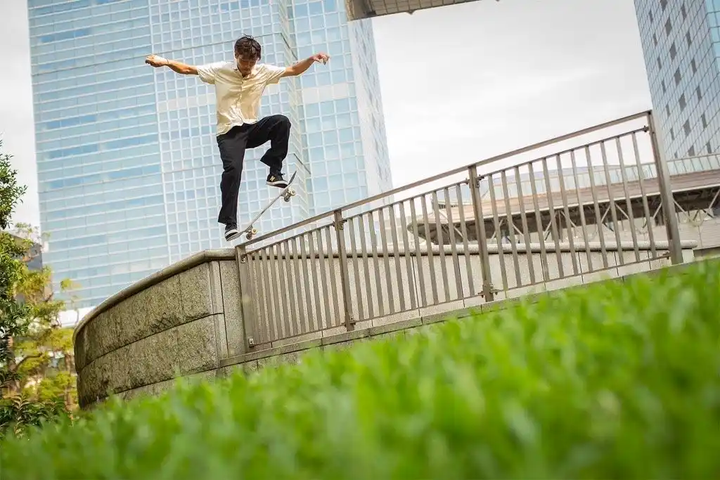 RVCA SHIBUYA STORE横にて、Kevin “Spanky” Long、Shota Kubo、高橋賢人、瀬尻稜が合流し、スラッピーカーブを使用した一般参加型のフリースケートセッションを開催。 |