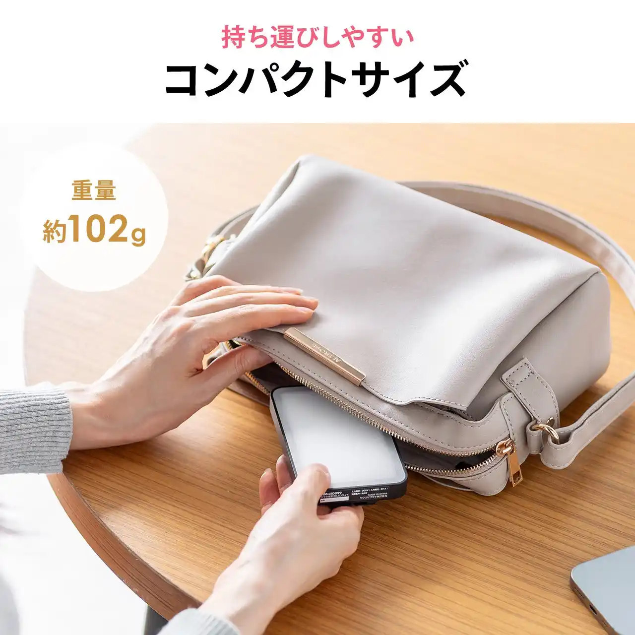 | 重さ約102gのコンパクト軽量設計で、持ち運びやすく、屋外撮影にも最適です。USB電源対応で、モバイルバッテリーやパソコンなどからも給電可能です。 | |||||