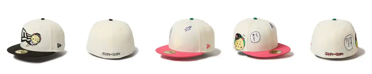 けたコジコジが、ニューエラロゴの横を飛んだり旗を持ったりと、本コラボレーションのために描き下 |