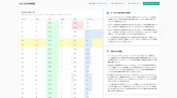 ・LP 分析 AI レポート(R):SiTest のユーザー行動データを解析し、改善構成案を提示