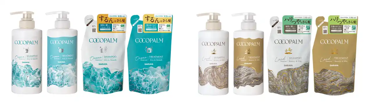 「COCOPALM」は、サラヤ独自の天然洗浄成分ソホロを配合した、地肌・髪と地球にめぐみをもたらすヤシの実うまれのサステナブルヘアケアブランドです。 |