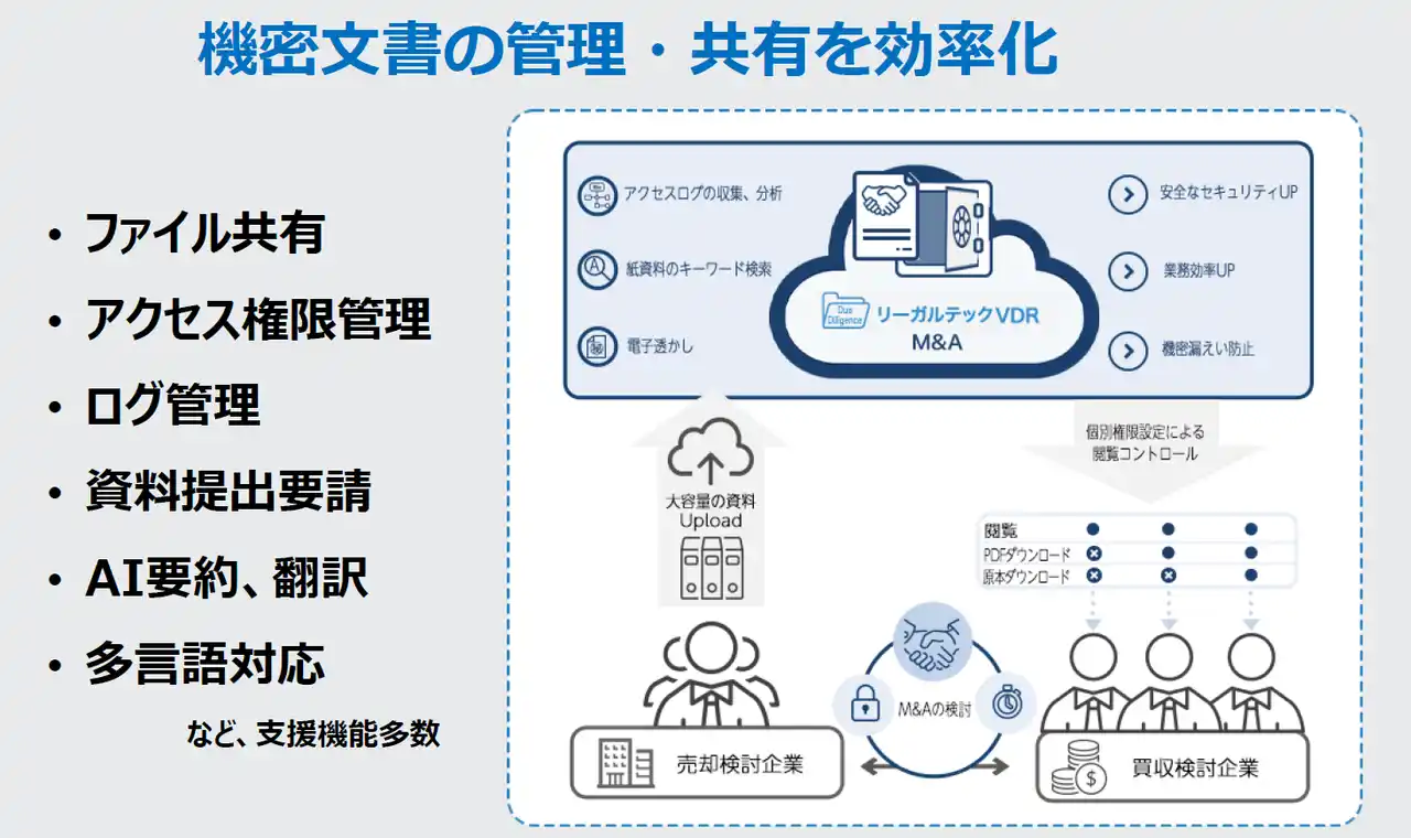 複数のサービスを比較した結果、リーガルテックVDRが選定された。 |