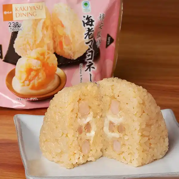 【内容】「柿安ダイニング(KAKIYASU DINING)」の看板商品「大海老マヨ」の、甘めのマヨソースと海老の味わいをイメージしたおむすびです。おむすびとして一体感を大切にするため、海老2尾は、薄く衣を付けて揚げ、コンデンスミルク・三温糖などで甘く優しい味わいのマヨソースと合わせました。甲殻類の旨み感じるピラフで包んだ、洋風な味わいのおむすびです。 |