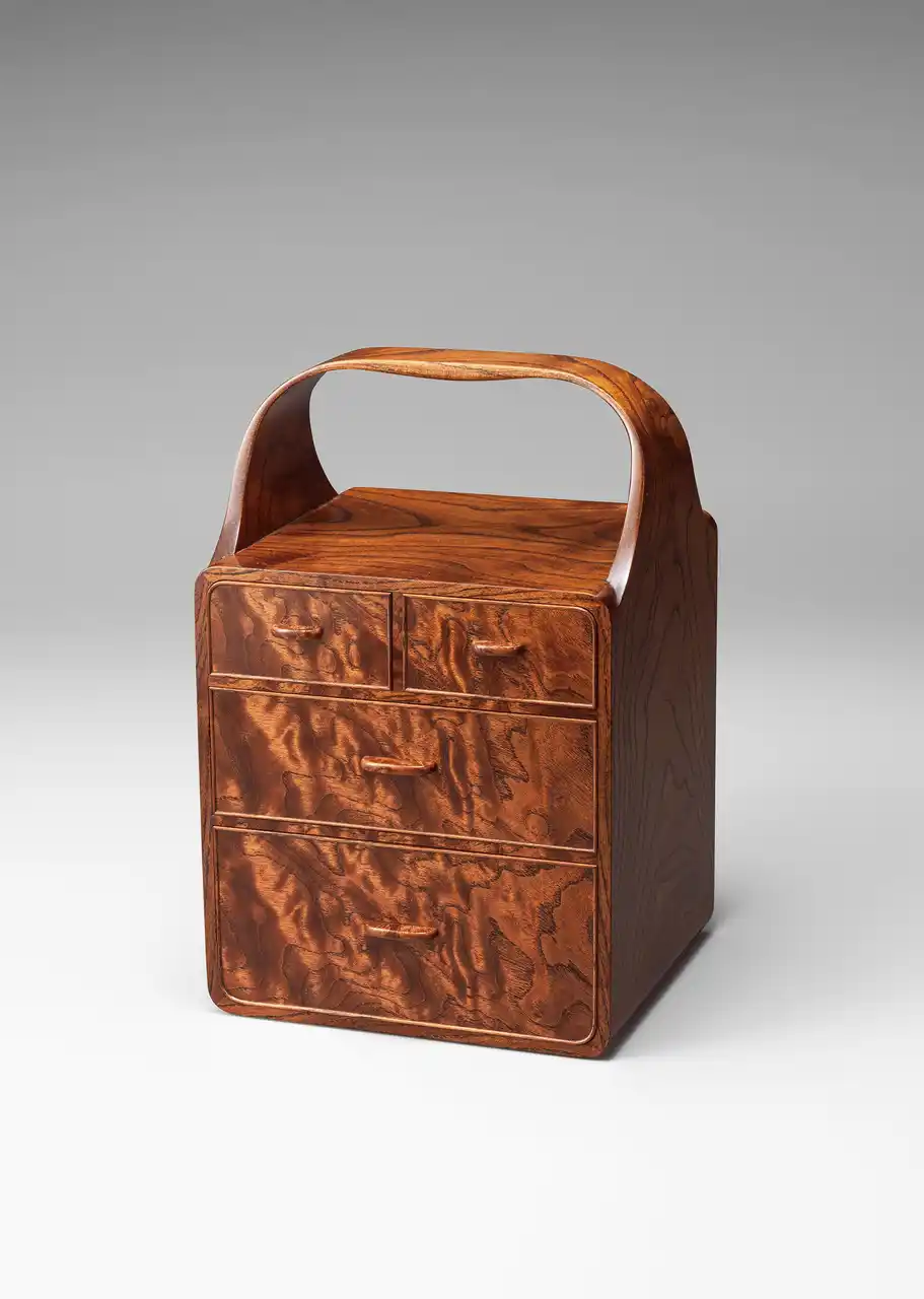 | 本展では、桑材の最高峰・御蔵島桑を用いた小抽斗や提箱をはじめ、小机、硯箱、手鏡やステッキなど、島崎氏による貴重な江戸指物の数々と、卓越した技をご紹介いたします。 | ||||||||||||||