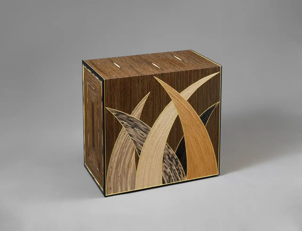 | 江戸指物師の家系に生まれ、伝統技法を忠実に継承し、木材の特性を巧みに活かしつつ様式美を追求する島崎氏。釘を使わずに木材を精緻に組み上げる組手技法は、強度と耐久性を高め、漆仕上げによる木目の美しさは一点ごとに異なる表情を見せます。技巧を誇示することなく、堅牢さと繊細さを併せ持つその作品には江戸の粋が凝縮されています。 | ||||||||||||||