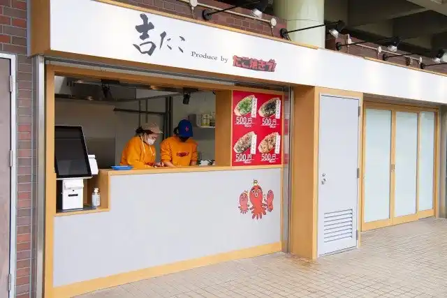 “焼くのも売るのもよしもと芸人”で人気のたこ焼き店「吉たこ produce by たこ焼きブ!」。 |