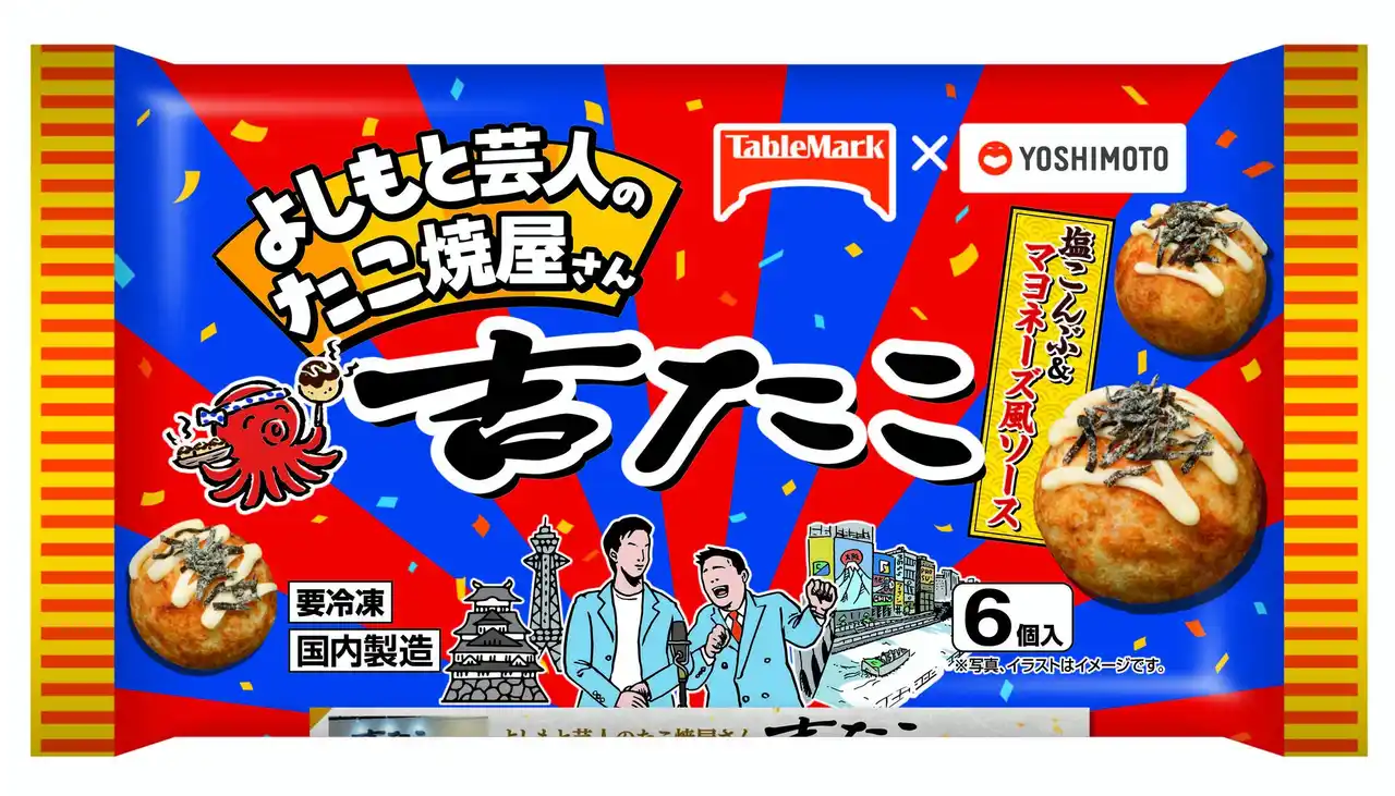 “焼くのも売るのもよしもと芸人”で人気のたこ焼き屋「吉たこ」は、株式会社日本アクセス(所在地:東京都品川区、代表取締役社長:服部真也)およびテーブルマーク株式会社(所在地:東京都中央区、代表取締役社長:松田要輔)との共同開発により、冷凍食品「吉たこ」の第2弾となる「吉たこ 白だしとろろ」を、2025年9月より全国で新発売いたします。 |