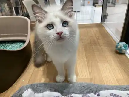 回復し、店舗で家族を探すラグドール |