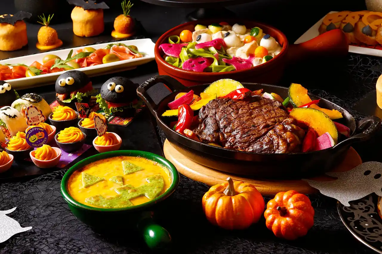 さらに、プレミアムパーティーセットから期間限定でハロウィンバージョンをご用意しました。ハロウィンパーティーを彩るおばけやコウモリモチーフのミニ照り焼きバーガーやシーフードブリオッシュ、ジャック・オ・ランタンのシーフードドリアを揃え、バラエティ豊かな前菜やメインディッシュに季節野菜とボリュームたっぷりのサーロインステーキをお届けいたします。デザートにはオブジェにもなる「Mr.Jack」でハロウィン気分を盛り上げます。 |