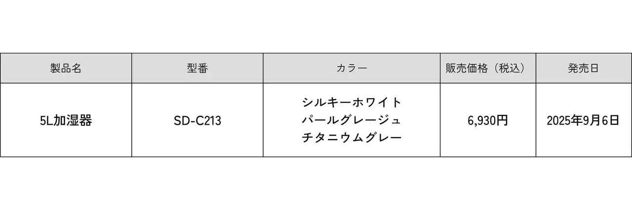 シロカ株式会社(東京都・千代田区)は、1日1回の給水で24時間加湿が可能な大容量の「5L加湿器」(SD-C113シリーズ)をリニューアルし、よりすみずみまでお部屋をうるおすことができるようになった新モデルを2025年9月6日に発売します。 |