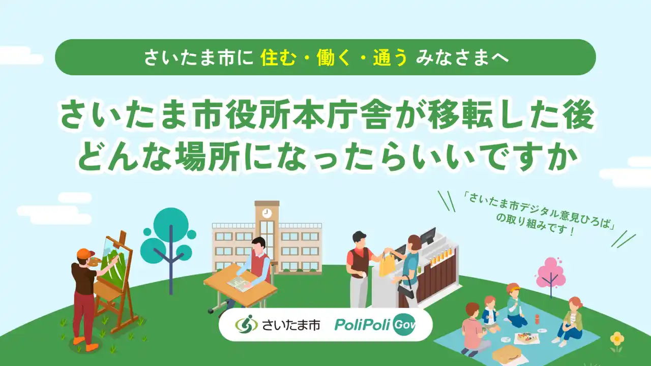 株式会社PoliPoli(所在地:東京都千代田区、代表取締役:伊藤和真、以下 PoliPoli)は、さいたま市が実施する市役所移転に伴う現庁舎地の利活用に関するアイデア募集に『PoliPoli Gov』が導入されることをお知らせします。 |