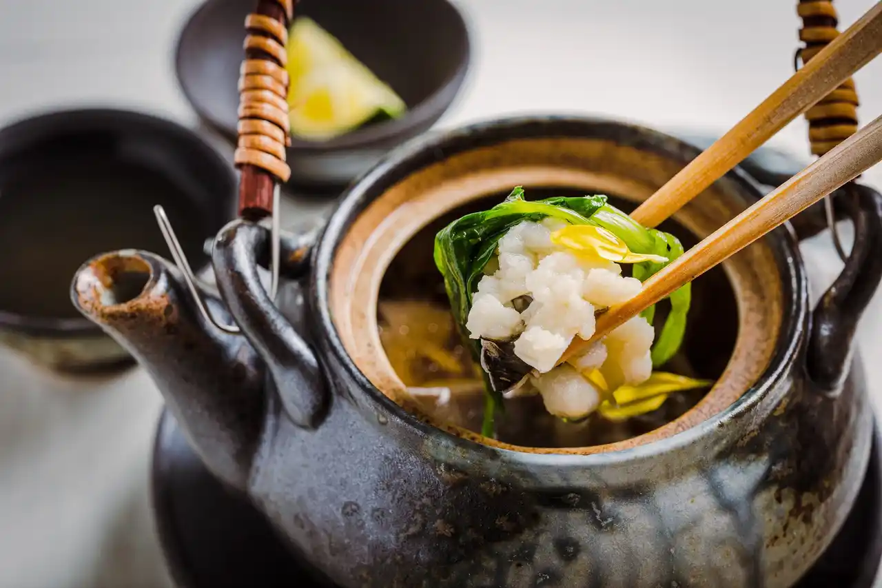 名残りの鱧と旬の松茸を贅沢につかった土瓶蒸しです。秋ならではの味覚を香り豊かなお出汁とともにお楽しみ下さい。 |