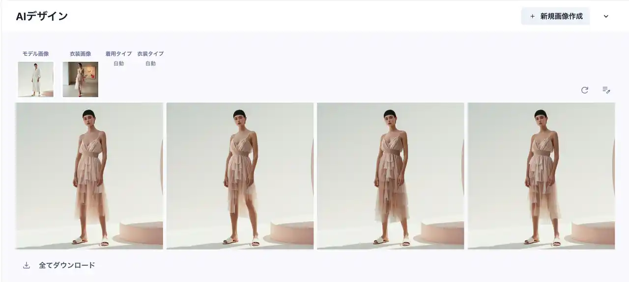 | ファッションビジネスにおいて、商品の魅力を伝える着用画像の制作は不可欠ですが、その裏ではモデルのキャスティング、スタジオやカメラマンの手配、煩雑な撮影スケジュール調整、そして多額のコストといった多くの時間と労力が費やされてきました。 | ||||