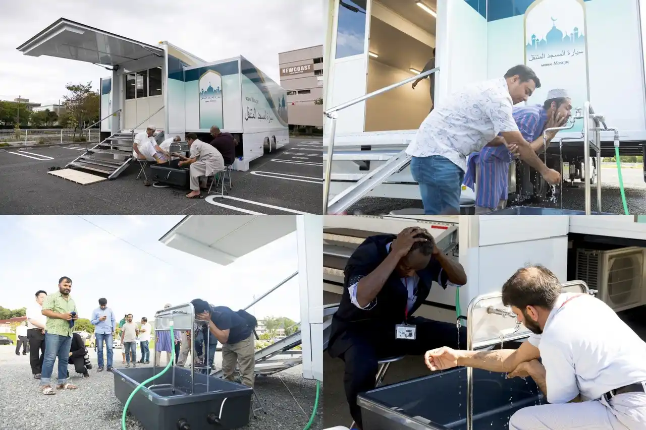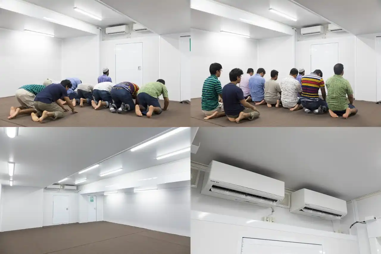モバイルモスクは株式会社YASU PROJECTが企画・製造した移動式のモスクで、大型トラックの荷台部分を礼拝室として活用するものです。災害時やイベント会場など専用の礼拝室がない場合でも静かで落ち着く礼拝環境を提供でき、国内外で役立てられています。 |