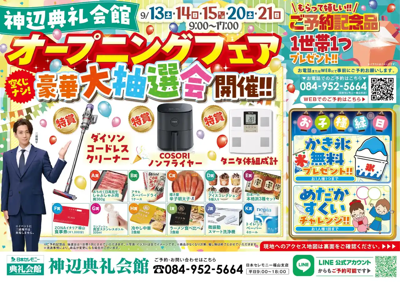 神辺典礼会館の開館を記念して、下記日程で「オープニングフェア」を開催いたします。 |