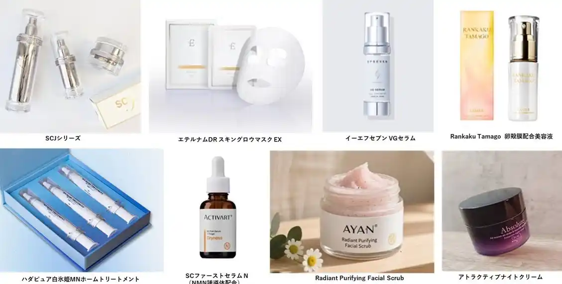 | 卵殻膜やスピルリナマキシマなどの自然由来成分を配合したナチュラル系製品に加え、幹細胞系やNMN誘導体配合など、肌の再生・修復に着目した高機能エイジングケアのアイテムまで、幅広い世代の肌悩みに応えるラインアップが出品いたします。 | |||