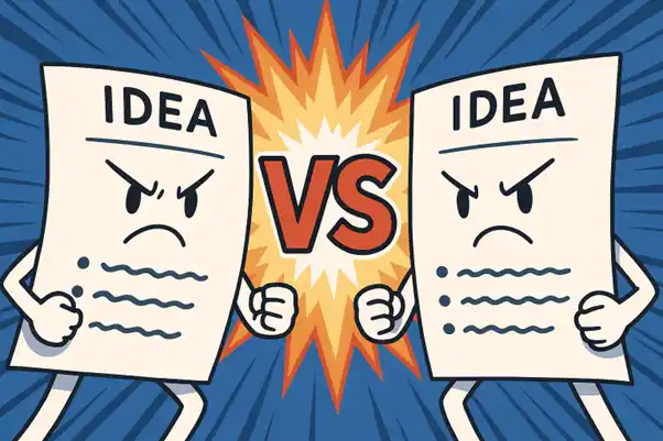 まず、作成した複数の指示書が、どれだけ良いアイデアを生み出すかを客観的に評価するため、アイデア同士を対戦させる形式を導入しました。 |