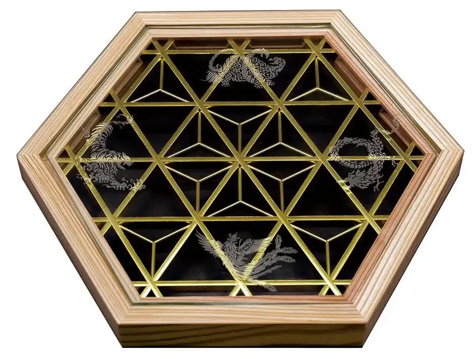 四方八方から良い運気を呼び込むと言われる八角形の箱は、運気アップをもたらします。箱の中は「麻の葉柄」、「金」、「八角形」という三重の霊力に守られた空間です。また、「麻の葉柄」は子どもを守る柄としても知られています。 |