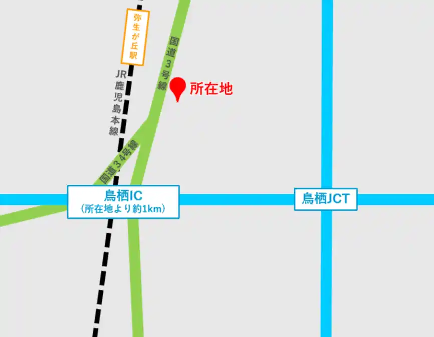 JR鹿児島本線「弥生が丘駅」から約800m(徒歩で約10分) |
