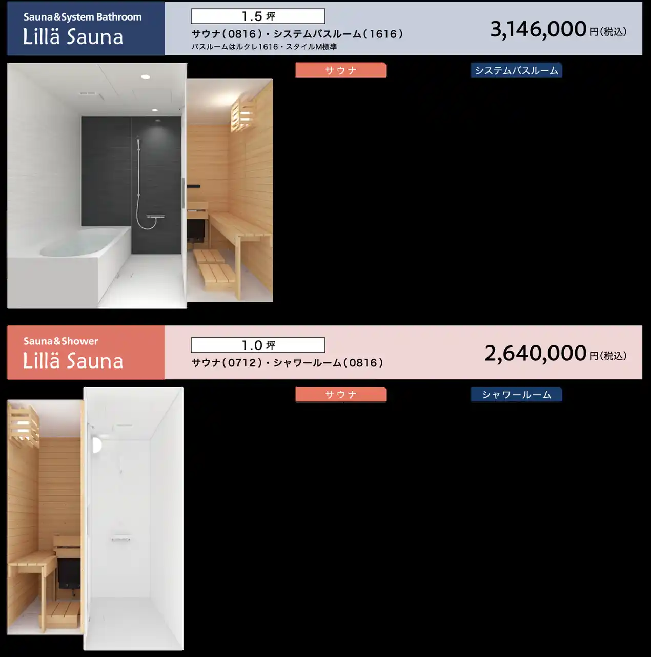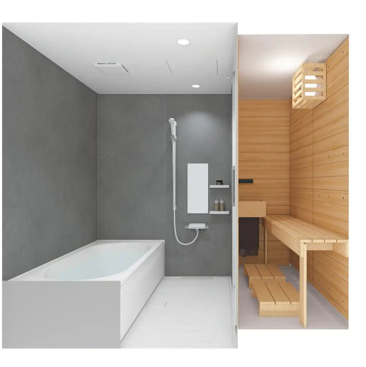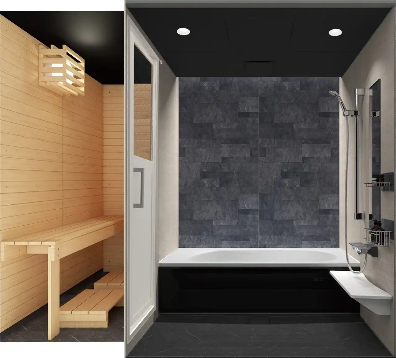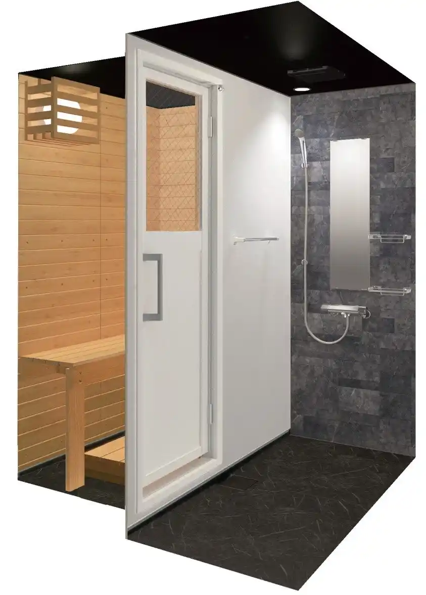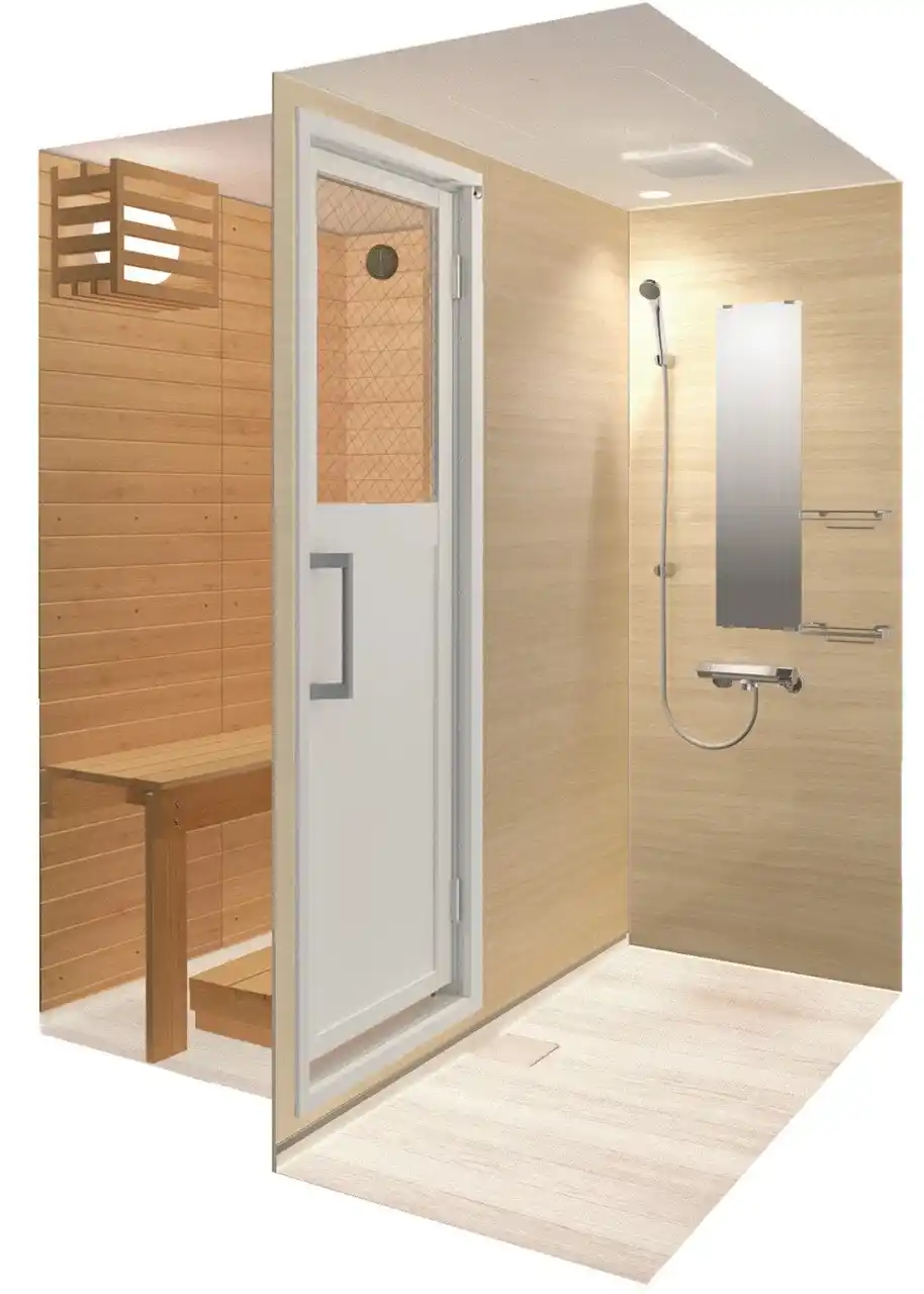 2024年10月に発売し、大きな反響を呼んだ同シリーズはサウナとシャワールームの組み合わせでしたが、今回新たにサウナとシステムバスルームを組み合わせた業界初※のシステムバスルーム工法のプライベートサウナを発売。さらにサウナを2人用にサイズアップし、水風呂に入りたい、2人でサウナを楽しみたいというニーズにお応えします。 |