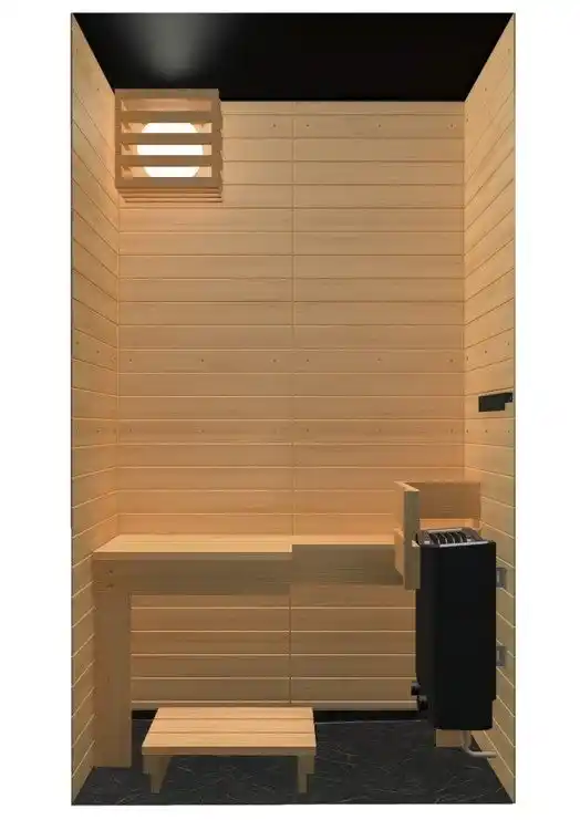 ベンチ、サウナヒーター、サウナストーンなど必要なもの全てを搭載した充実の基本仕様です。 |