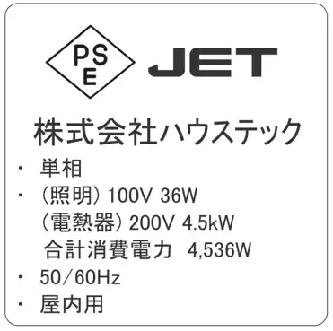 家庭用サウナは、電気用品安全法(PSE)における特定電気用品の「電気サウナバス」に該当します。 |