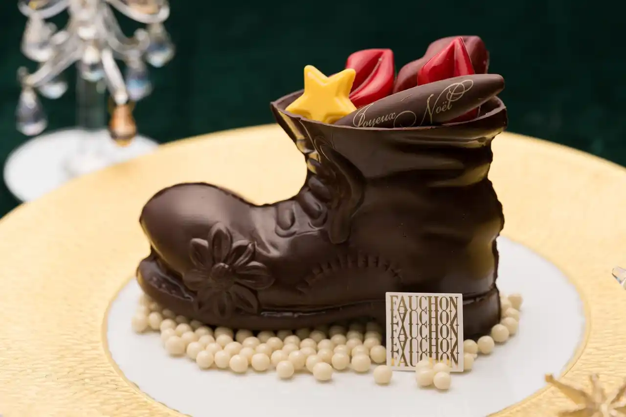 チョコレートでできたこびとの靴の中に、チョコレートパフを沢山詰めて、フォションホテル京都特製のボンボンショコラを6粒添えました。プレゼントに喜ばれるボンボニエールとして、クリスマスギフトにいかがですか。 |