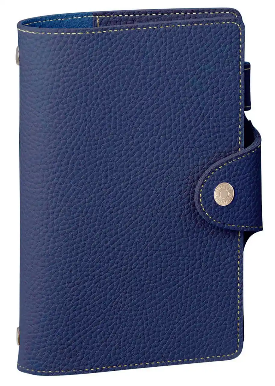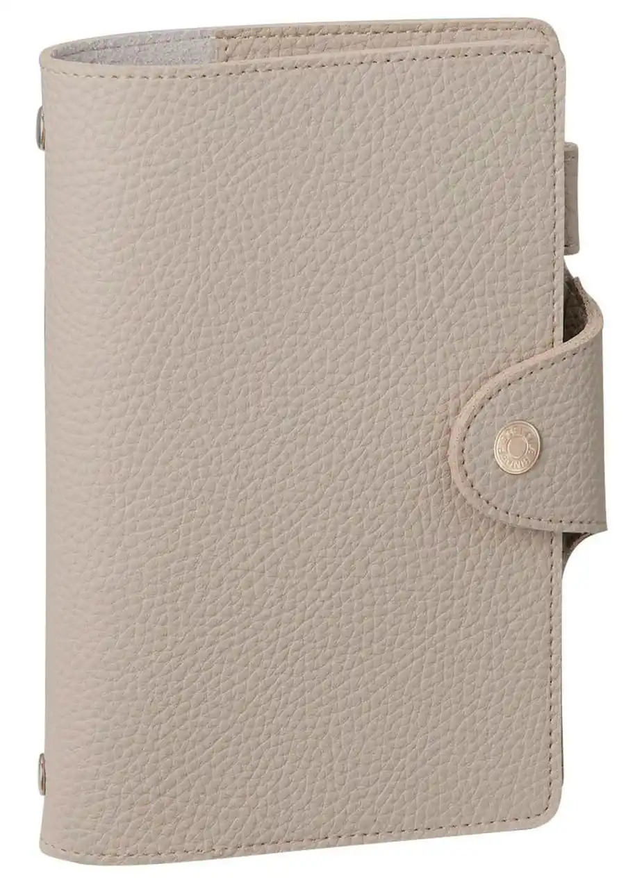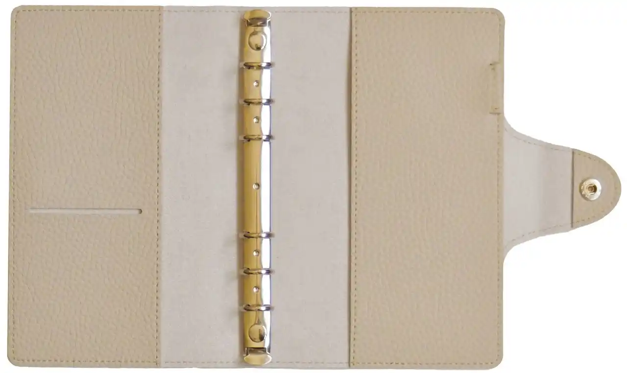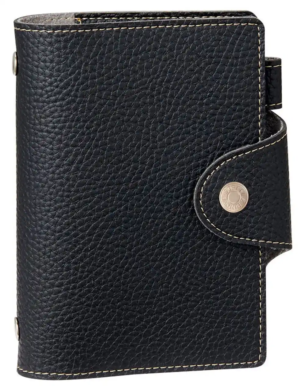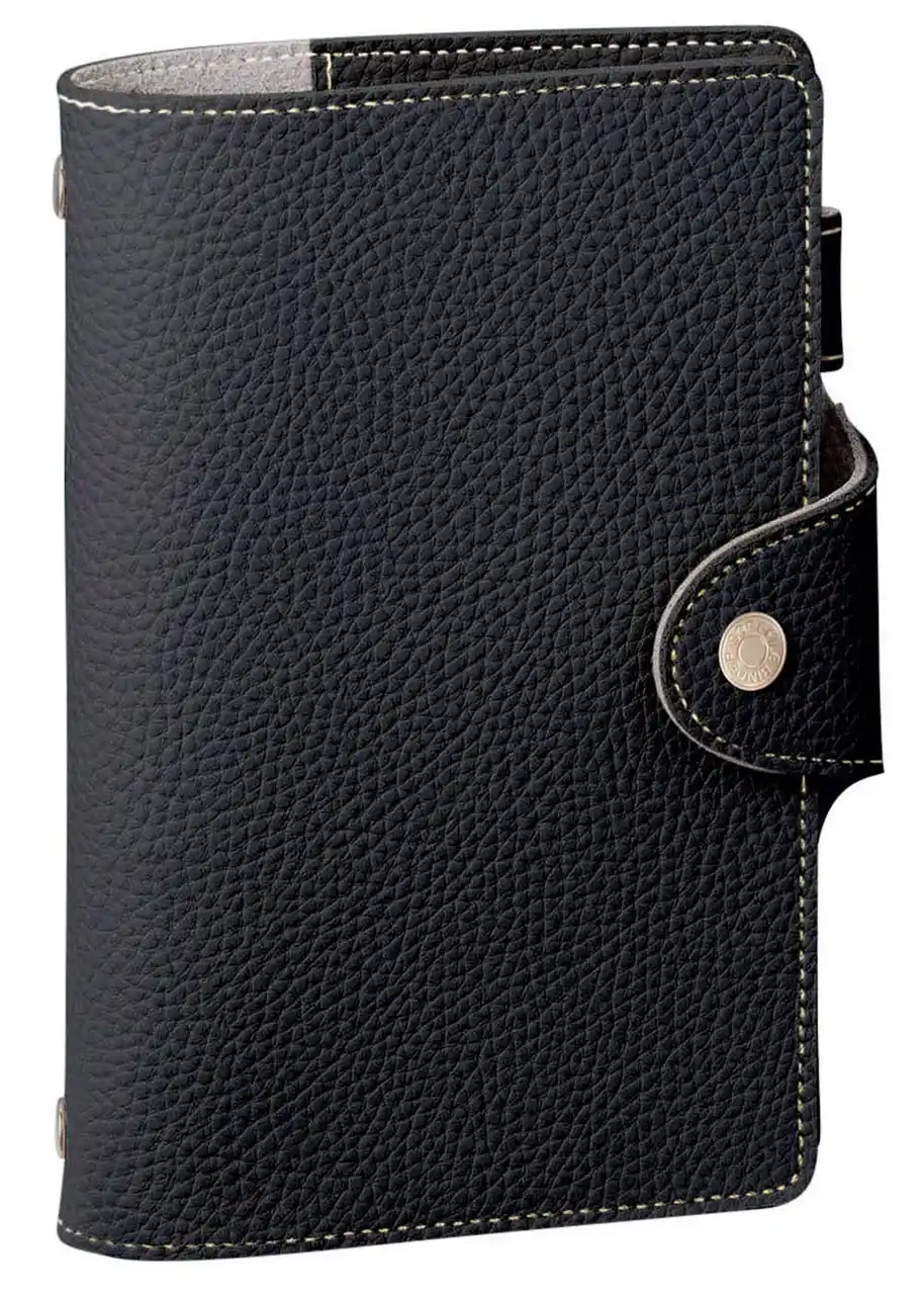 サイズは、A5、聖書(バイブル)、ポケットの3種類をラインアップ。いずれもニーズの高い15mmリングを採用しています。さらにカードポケット、サイドポケット2つ、そして可動式のペンホルダー(約14mm径まで対応)が付いています。 |