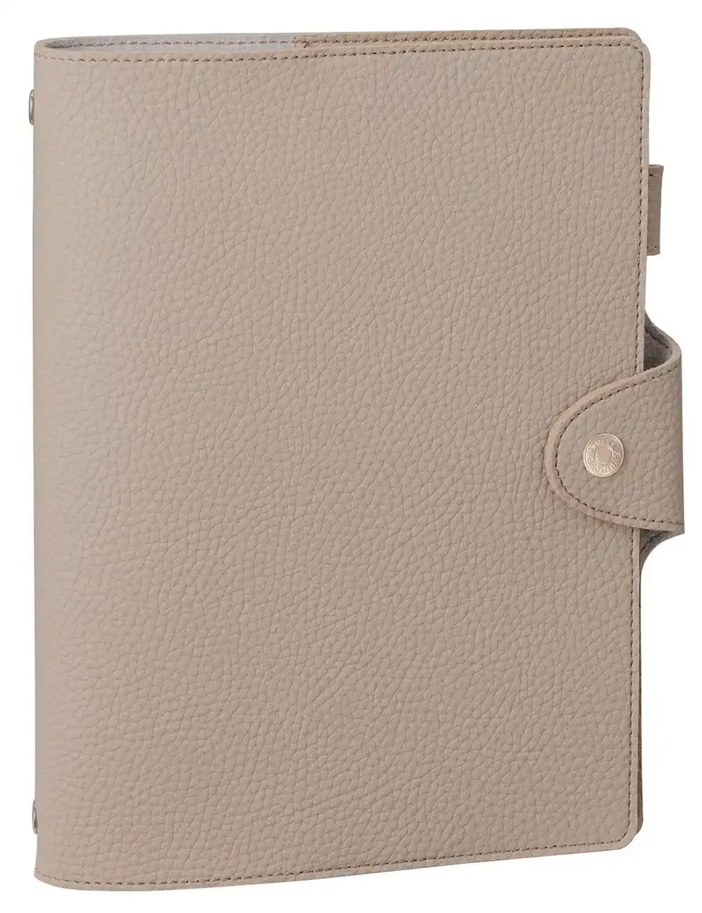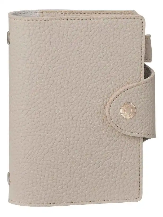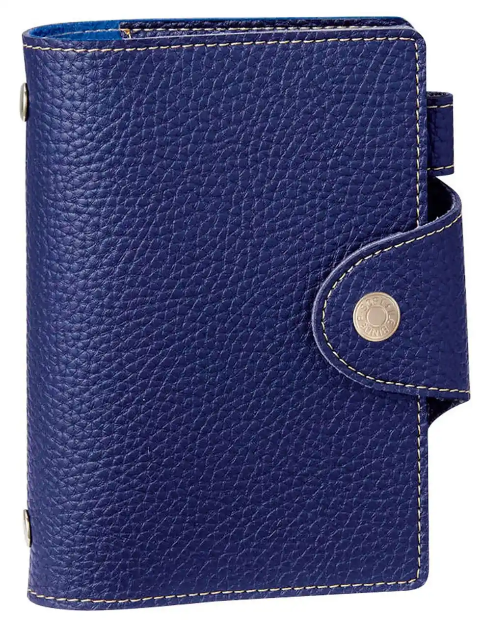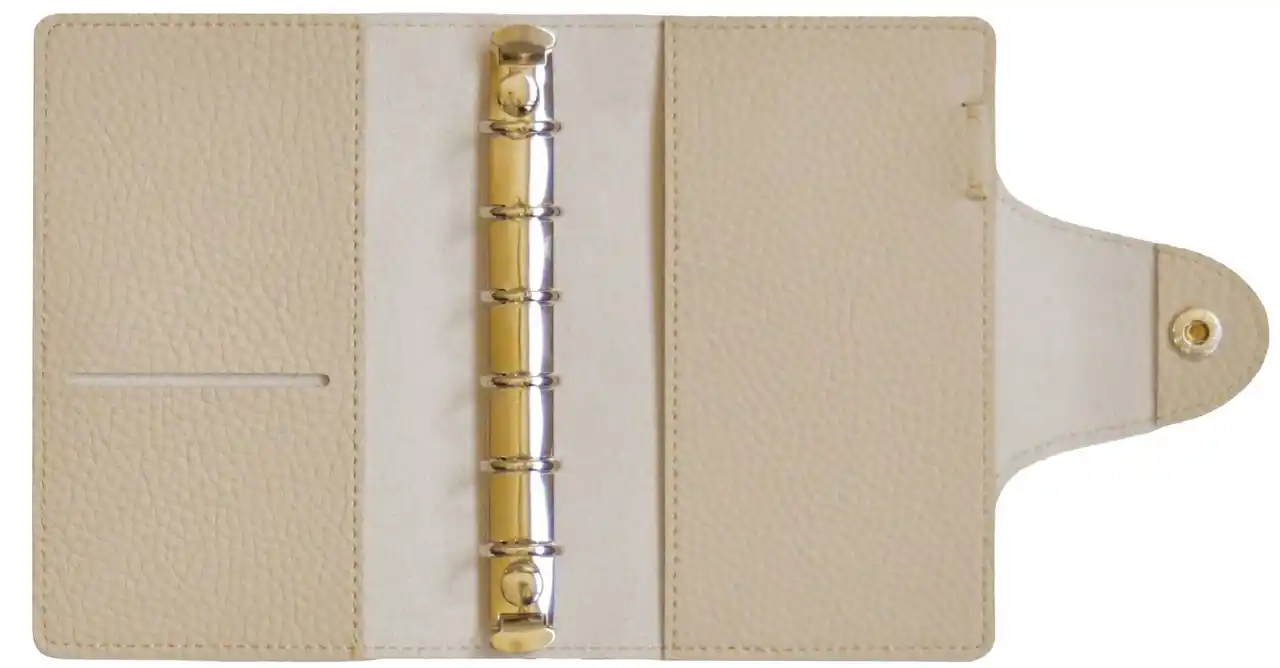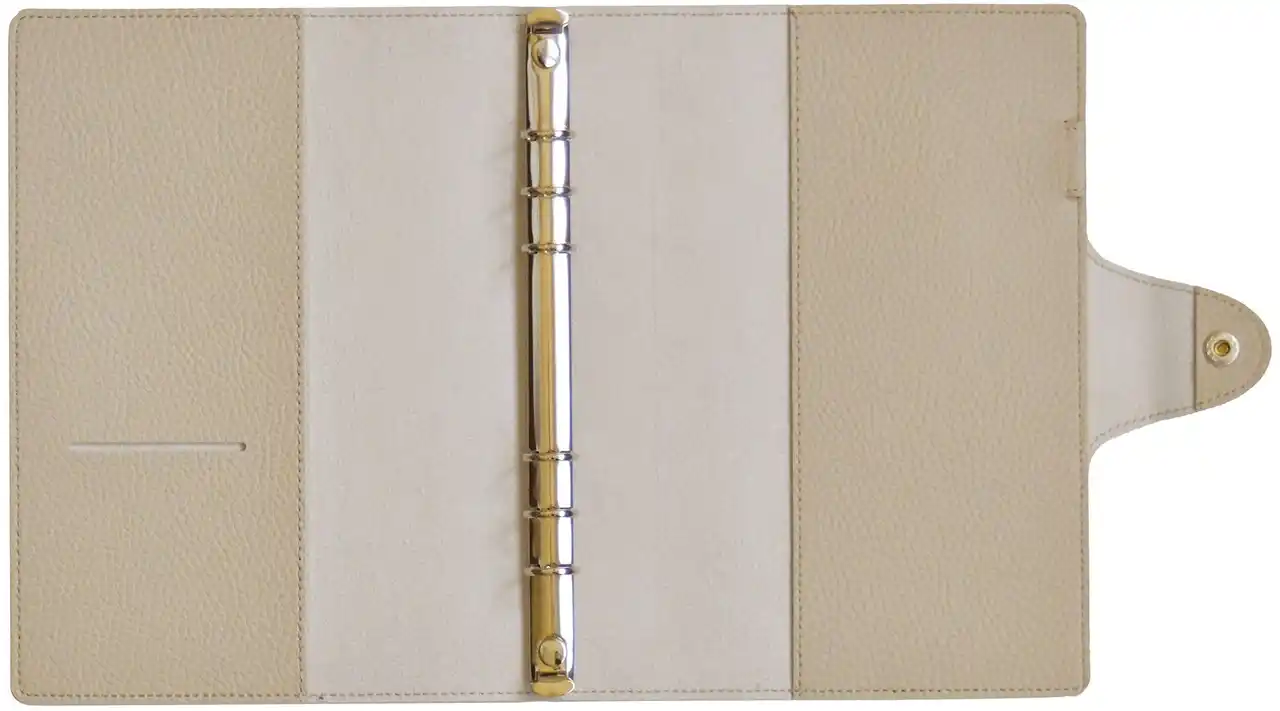 サイズは、A5、聖書(バイブル)、ポケットの3種類をラインアップ。いずれもニーズの高い15mmリングを採用しています。さらにカードポケット、サイドポケット2つ、そして可動式のペンホルダー(約14mm径まで対応)が付いています。 |