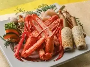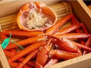 例年9月から翌年5月までが漁期ですが、特に9月~11月は“走り”の時期ならではの瑞々しい身質と濃厚な旨みを楽しめます。当館では、朝競りで仕入れた香住ガニをその日のうちにお客様へご提供。焼き・刺し・茹で、蒸しなど、多彩な調理法でお召し上がりいただけます。 |