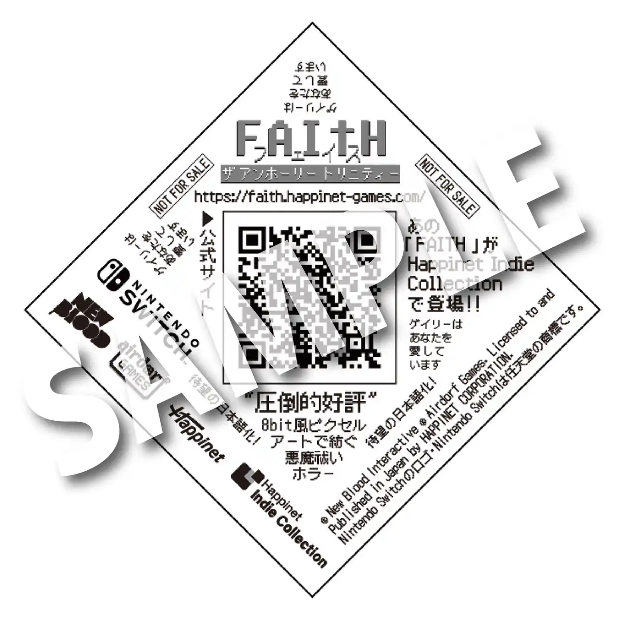 映画化も発表された話題のゲーム『FAITH』は、ピクセルアートが特徴的なレトロ風のホラーゲームです。プレイヤーは若き司祭ジョンとなって、悪魔憑きの調査に向かうことに。その先には謎めいた人物や恐ろしい悪魔、狂気のカルト信者、そして弱まりつつある自分の信仰心との戦いが待ち受けます。 |