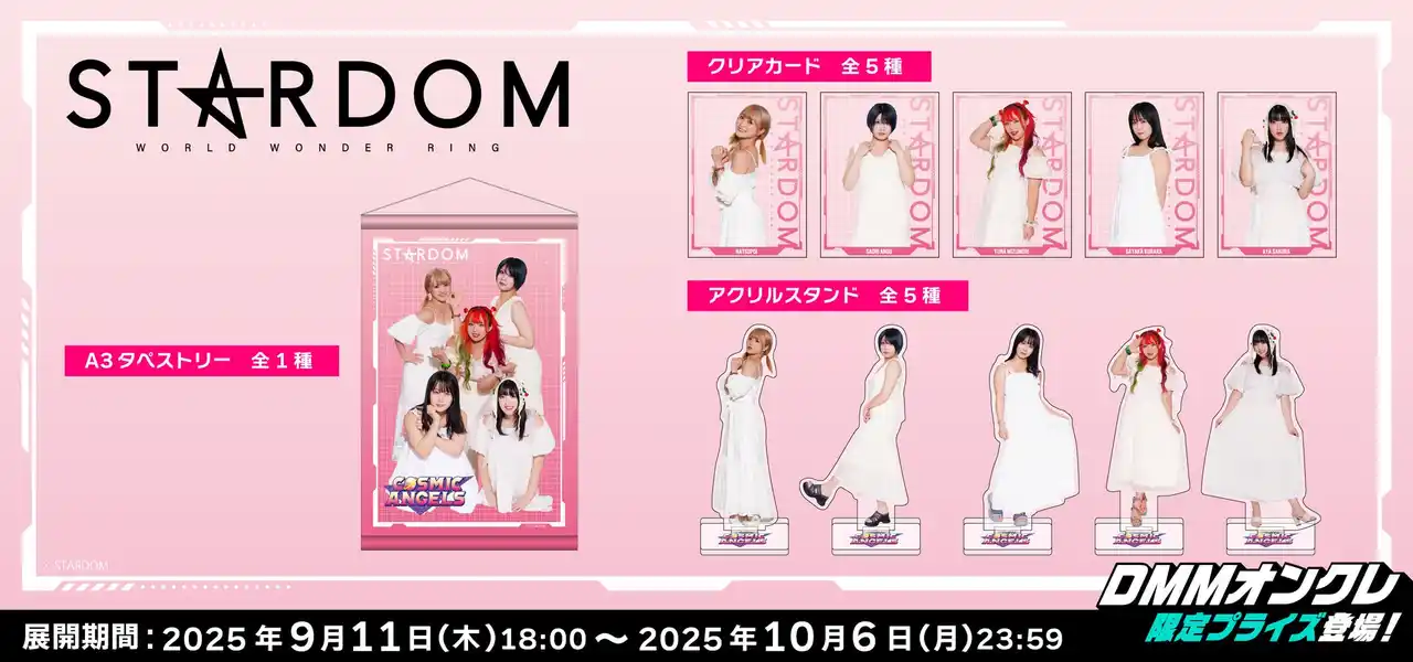 また、2025年9月11日(木)より「STARDOM」内のユニット、「COSMIC ANGELS」のDMMオンクレ限定撮り下ろしグッズを展開いたします。 |
