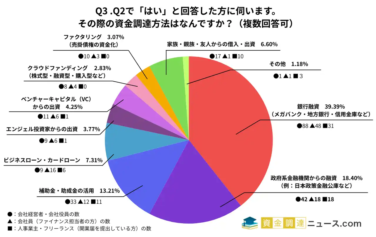 Q3.Q2で「はい」と回答した方に伺います。 その際の資金調達方法はなんですか?(複数回答可)
