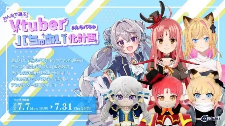 2024年10月には、ファン投票で選ばれたVTuberを商品化する「みんなで選ぶVtuberバちゅぬい化計画」という企画を実施し、2025年7月の受注期間まで大きな盛り上がりを見せました。 |