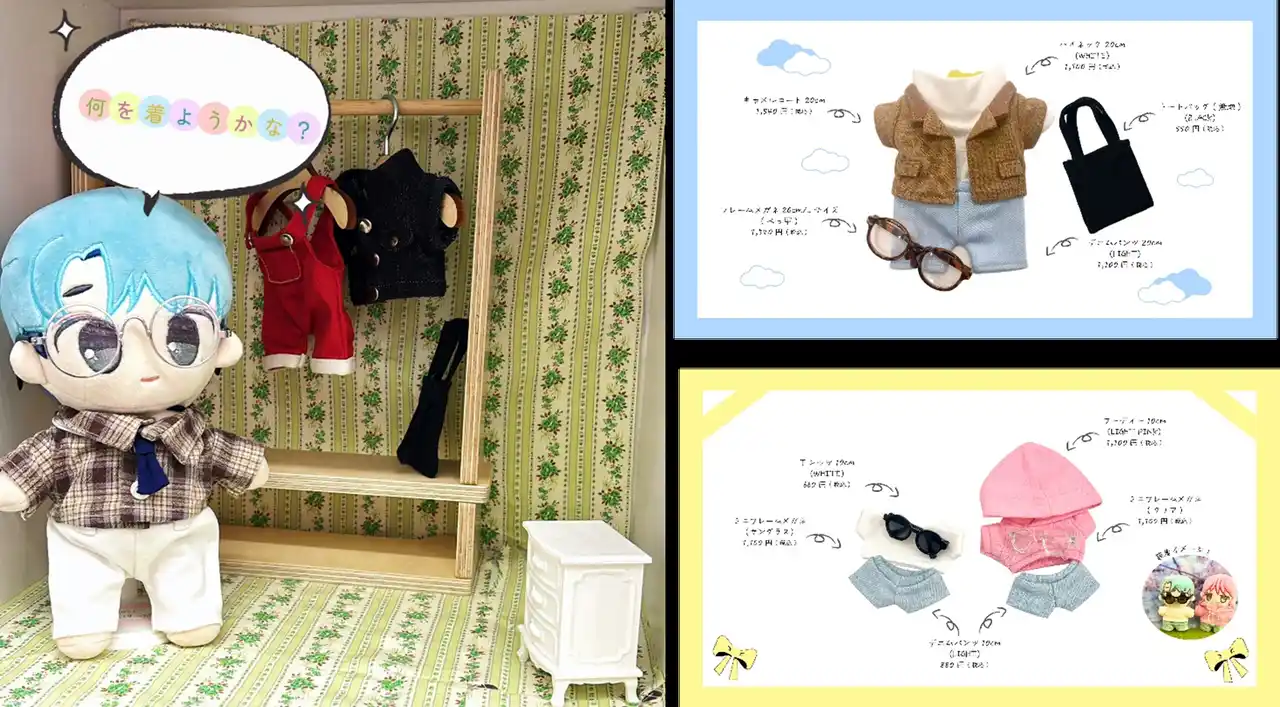 人間用の服づくりのノウハウを活かした精緻な構造の“ぬい服”を製作し、定番からトレンドまで幅広いコーディネートを展開、10cm/15cm/20cmサイズを中心に豊富な商品ラインナップを揃えて、“推し活”の楽しみをさらに広げています。 |
