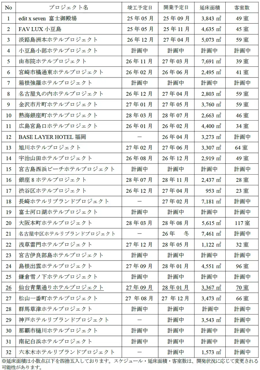 | ■ホテル開発予定案件一覧 | |||