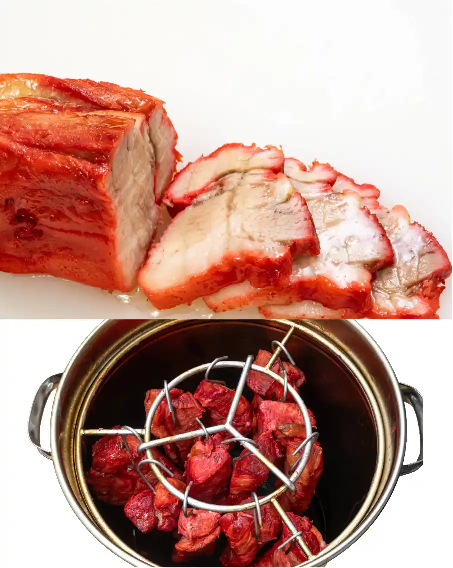 毎日店舗で焼かれる吊るし焼赤焼豚が絶品 |
