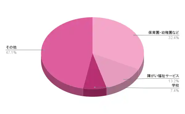 | 開館から約5ヶ月間で、延べ68団体にご利用いただきました。その内訳は、乳幼児施設を中心とした保育園・幼稚園が半数以上を占めるほか、障がい福祉サービスを運営する団体が約13%、さらには老人クラブや他府県からの行政視察など、多世代・幅広い団体による利用が広がっています。 | ||||||||||||||
