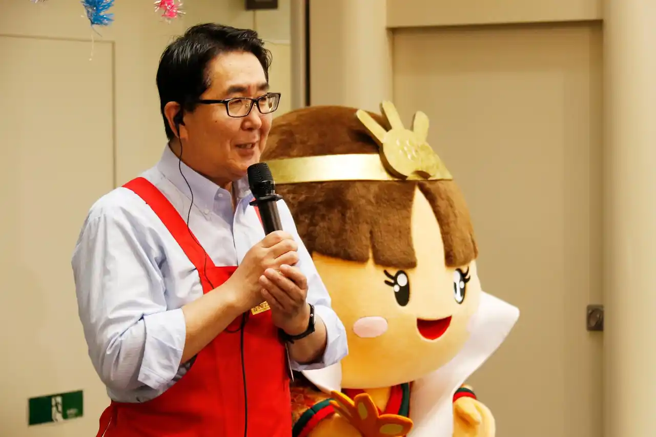 | その後、館長の前田 英隆(まえだ ひでたか)が、「関西一円から多くの方にご来館いただき、開館からわずか5ヶ月で、年間来館者目標の5万人を突破することができました。心より感謝申し上げます。現在は三郷町をはじめ、周辺の市町村とも連携し、歴史遺産と結びつけた観光企画を進めております。今後も木の魅力を身近に感じていただけるよう、さまざまな取り組みを展開してまいります。また、『おもちゃ学芸員』の養成にも力を入れ、幅広い年代の方が活躍できる場をつくるとともに、当館での体験がより充実したものになるよう努めてまいります。」と、感謝と今後の抱負を述べました。 | ||||||||||||||