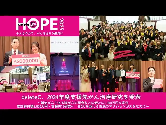 | 認定NPO法人deleteC(デリート・シー/代表理事:小国士朗)は、みんなの力で、がんを治せる病気にすることをミッションに、全国の市民・企業団体・医療者が一体となって、がん治療研究支援とがん啓発に取り組む「deleteC大作戦2025」を、2025年9月1日~9月30日のがん征圧月間・健康増進普及月間に全国規模で同時開催します。 | ||||||||||||||||||