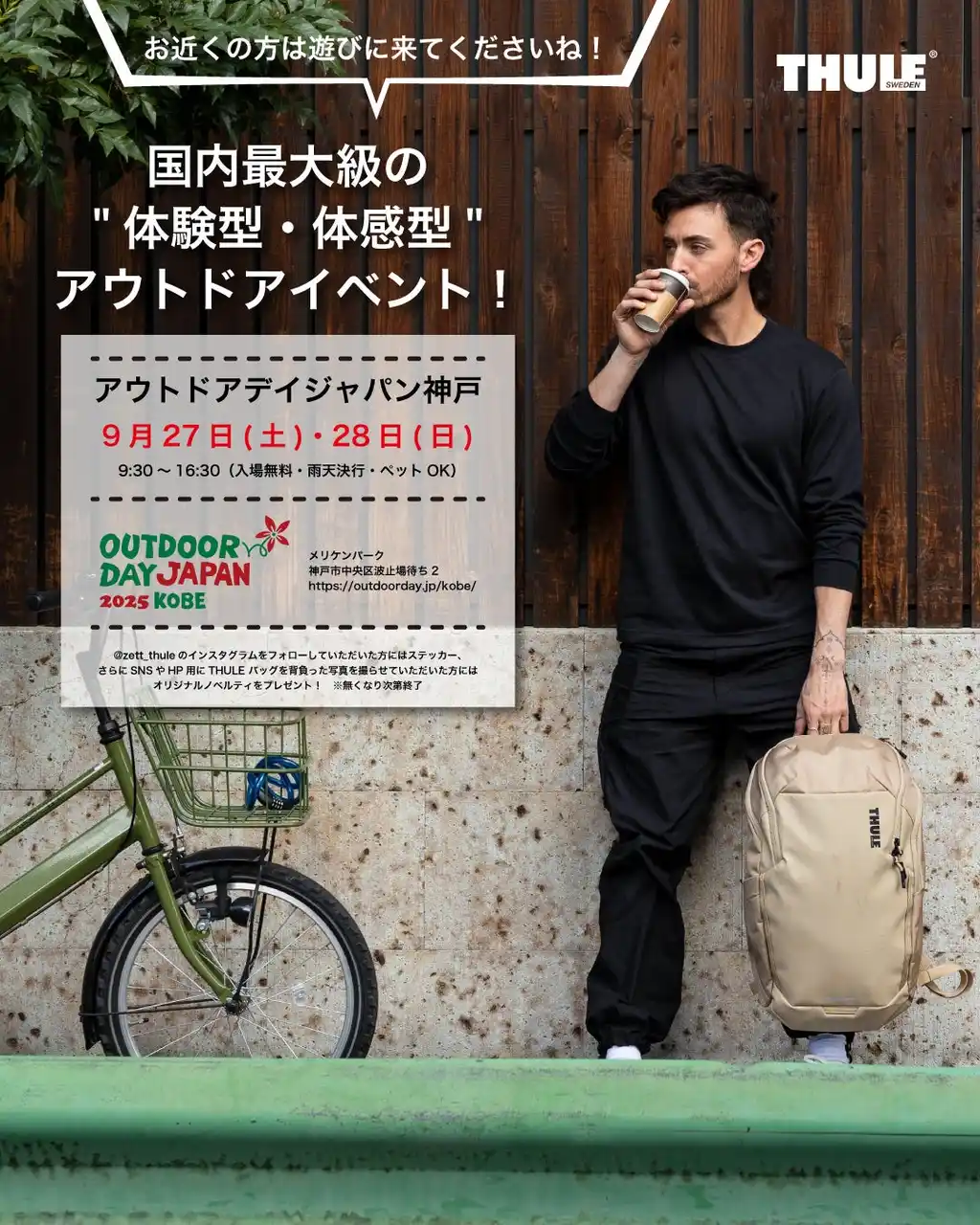 ゼット株式会社が取り扱うスウェーデンのブランド『THULE』(スーリー)は、2025年9月27日(土)から28日(日)に神戸メリケンパークで開催される「アウトドアデイジャパン神戸2025」に出展します。 |